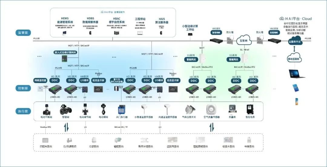 海林自控將物聯(lián)網(wǎng)技術(shù)融入DDC,加入更多AI算法,使其具備豐富的接口、靈活的組網(wǎng)并支持多種標(biāo)準(zhǔn)通訊協(xié)議,可以對(duì)樓宇內(nèi)的冷/熱機(jī)組、冷/熱源、空調(diào)機(jī)組、新風(fēng)機(jī)組、照明和給排水等機(jī)電設(shè)備的管理控制,實(shí)現(xiàn)分散控制,集中管理,為樓宇創(chuàng)造優(yōu)質(zhì)的空氣品質(zhì)的同時(shí),實(shí)現(xiàn)節(jié)能降耗。