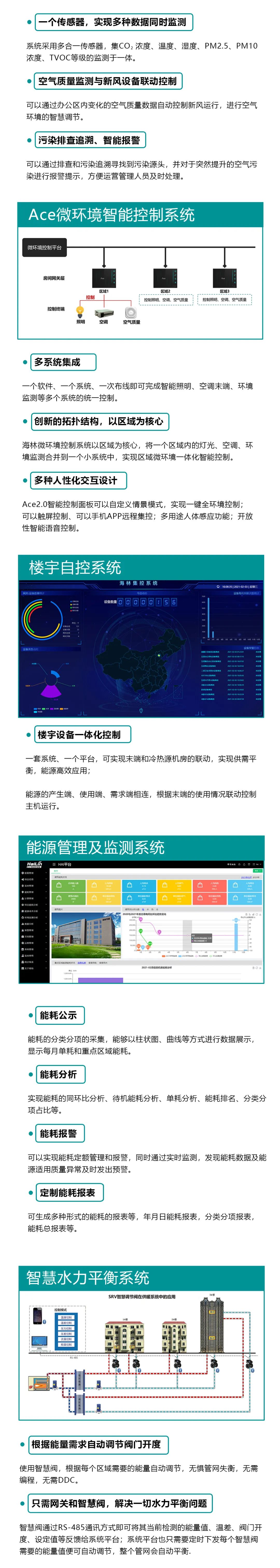 江蘇海林基于“自動控制+AI+IoT”技術(shù)及“樓宇自控+能源管理+微環(huán)境管理”方案,匯聚樓宇自控、能源管理及智能人居三大業(yè)務(wù)及全線產(chǎn)品,建立統(tǒng)一的數(shù)字化能源管理系統(tǒng)平臺,對建筑內(nèi)的空調(diào)、采暖、新風(fēng)、熱水、燈光、窗簾及溫度、濕度、空氣質(zhì)量和能耗,實施監(jiān)測、控制、分析和管理,創(chuàng)建舒適健康和節(jié)能的建筑環(huán)境,同時實現(xiàn)節(jié)能降耗,助力建筑樓宇脫碳,促進(jìn)可持續(xù)發(fā)展。
