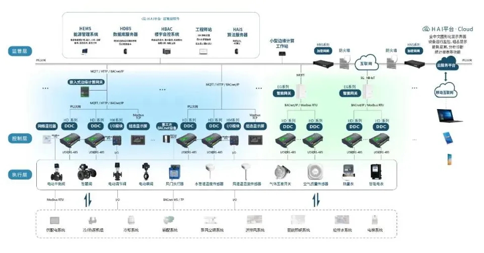 HAI平臺樓宇自控系統(tǒng)具有強(qiáng)大的接口能力,可以實現(xiàn)對住區(qū)冷熱源、空調(diào)機(jī)組、智能照明等設(shè)備設(shè)施的自動化管理。海林IoT-DDC 憑借強(qiáng)大的運(yùn)算能力和豐富的接口(3 個 RS-485)可直接接入多個子系統(tǒng),冷熱源機(jī)組控制、能耗狀態(tài)、室內(nèi)環(huán)境控制均可在一個設(shè)備內(nèi)完成,實現(xiàn)真正的局部區(qū)域本地化實現(xiàn)能源樓控的解決方案。