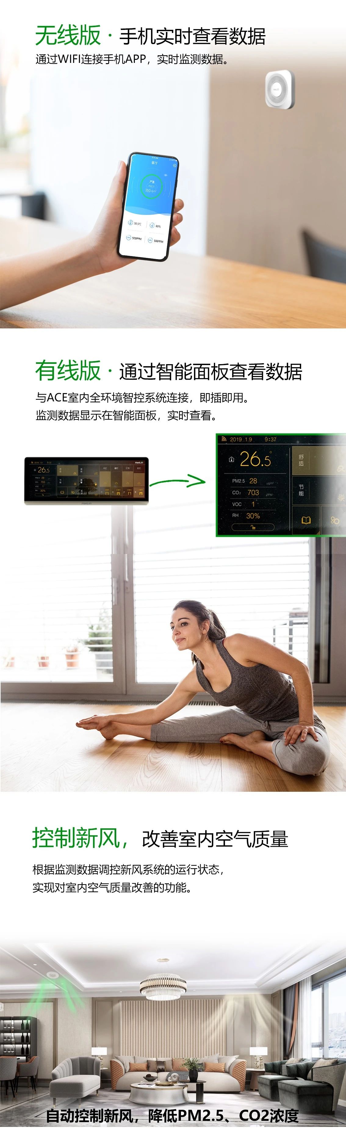 集 PM2.5、TVOC、CO? 、溫度、濕度的監(jiān)測功能于一體,實時精準(zhǔn)監(jiān)測,數(shù)據(jù)一目了然