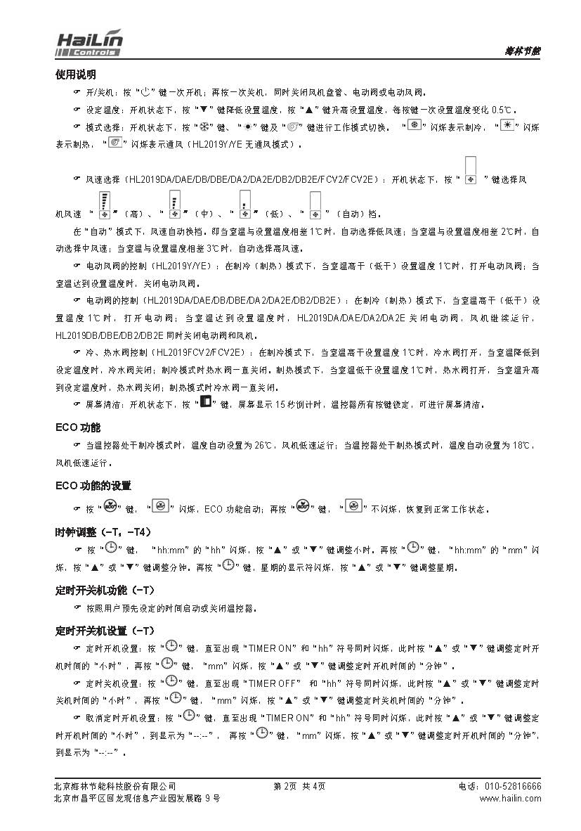 HL2019系列豪華型高檔觸摸屏液晶溫控器采用最新外觀設計,適用于工業、商業及家庭居室的溫度控制。通過環境溫度和設定溫度的比較結果,控制空調系統末端的風機盤管及電動閥、電動球閥或風閥的工作狀態,以達到調節環境溫度、舒適和節能的目的。