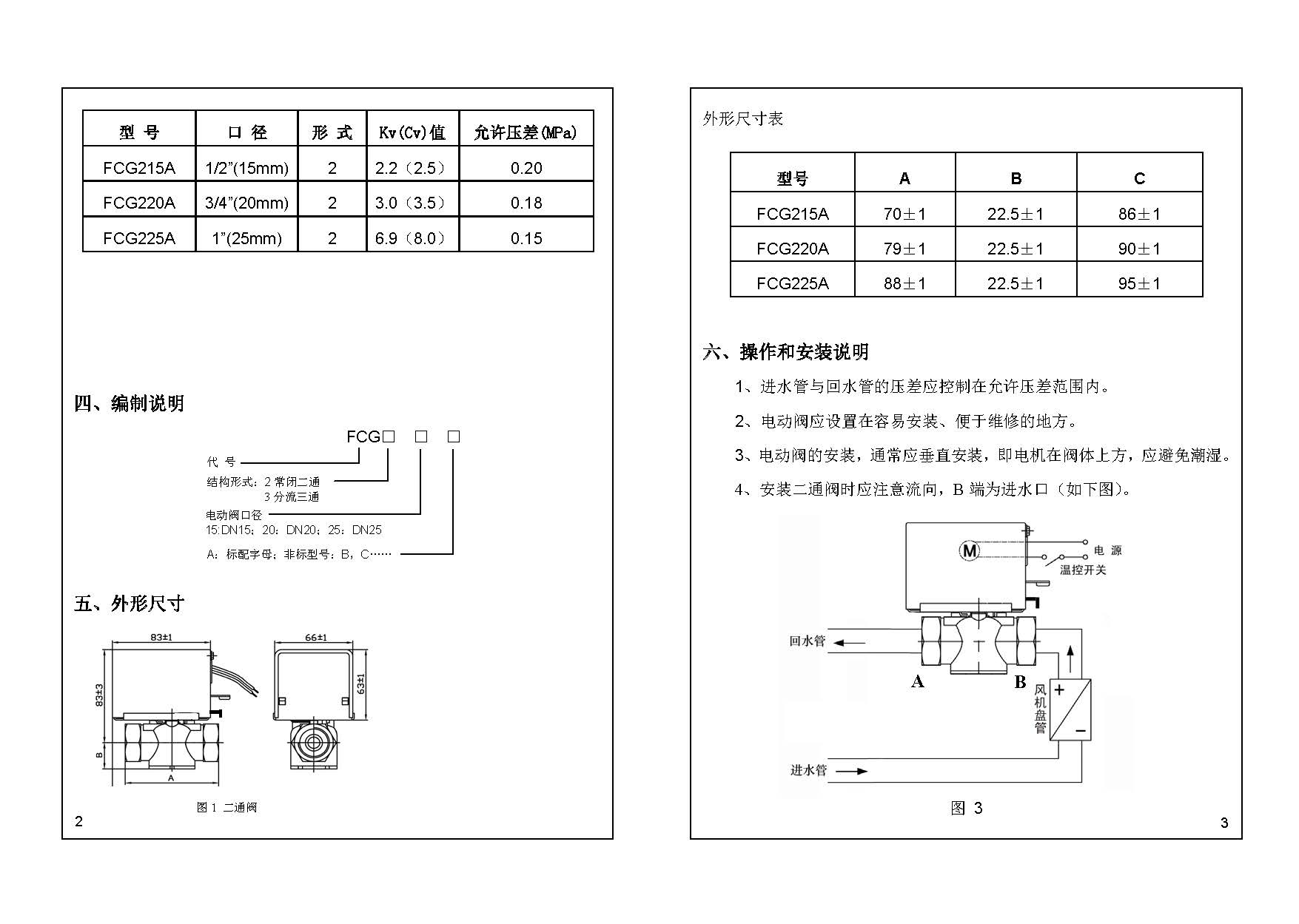 FCG 系列電動閥用于空調末端水路控制。其由溫控器(又稱恒溫器)控制電動閥電機,并通過減速機構和復位彈簧使閥門開或關,從而實現管道里的介質流通或斷開,再通過風機盤管送風,實現溫度的自動控制。