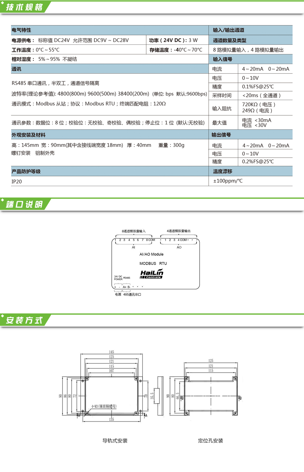 I/O擴展模塊HL-M02/HL-M03/HL-M04是一款可通過RS485接口與遠程主機或者樓宇控制器通訊的設備;該產品具有8路電壓0~10V或0~20mA或4~20mA模塊量輸入、4路0~10V或0~20mA或4~20mA模擬量輸出。該控制器具有1路485通訊串口,可實現與MODBUS設備通訊。應用于樓宇自控系統中與樓宇控制器配套使用。